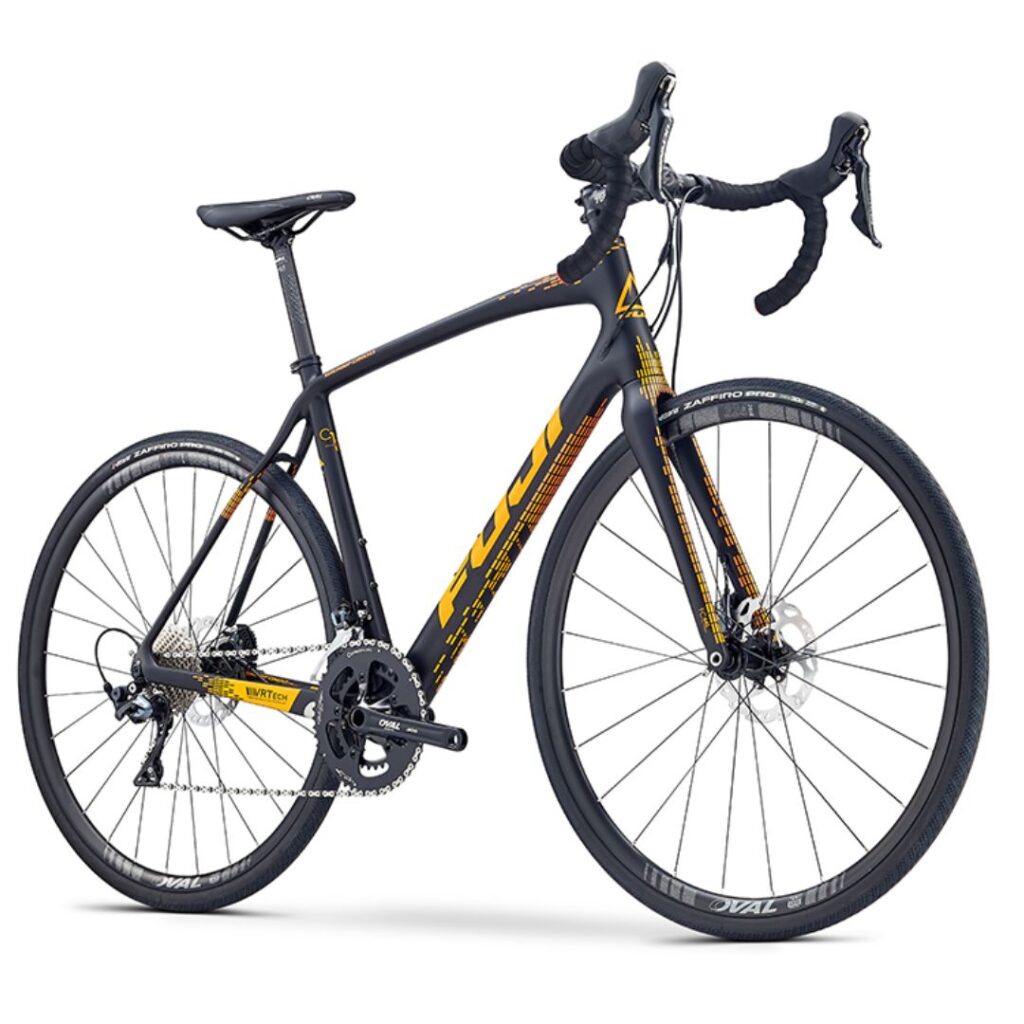 Our road bike fleet includes the Fuji Gran Fondo 1.5 and the Fuji Brevet 1.5 (Women’s). Two up-to-date road bikes with disc brakes and 30mm tyres.
