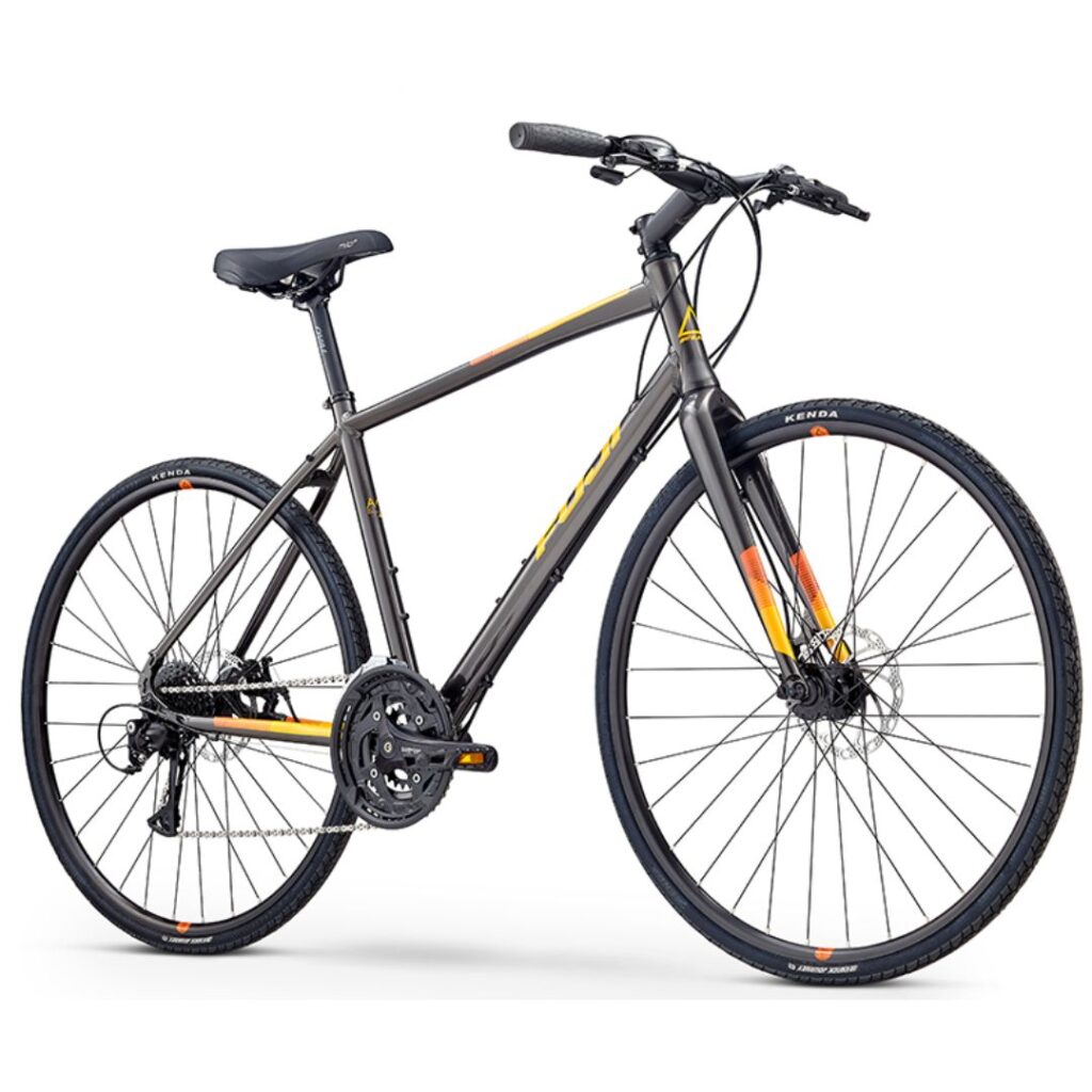 Our hybrid bike is the Fuji Absolute 1.7. 32mm tyres and disc brakes are a good combination for unfamiliar roads.