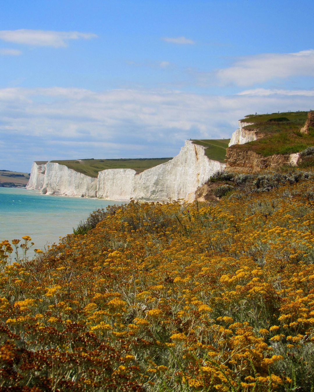 The route follows a variety of different trails, with single tracks, rolling hills, chalk cliffs, and even paths that wind through beautiful English vineyards. Youโll see picturesque villages like Cocking, Amberley, Washington, Fulking, Pyecombe, and Alfriston, and towards the end of your hike, the beautiful Seven Sisters chalk cliffs and Beachy Head with views over the iconic Beachy Head Lighthouse.