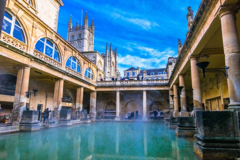 Into Bath, you have a wealth of options, both historical places of interest to visit, and sites to make your lunch or dinner setting. The Roman Baths are a must, and the Gainsborough Spa Hotel is a lovely, Georgian spot in which to enjoy dinner.
