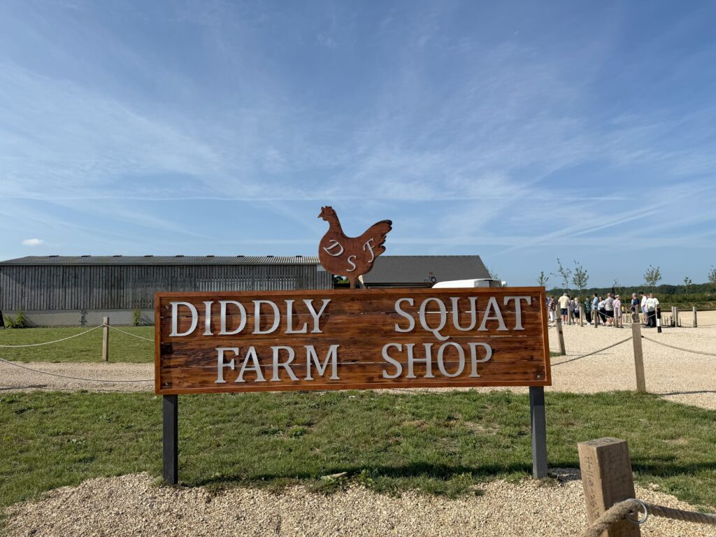 If you’re after a photo rather than produce, the famous ‘Diddly Squat’ sign (a bit like a rural version of the Las Vegas sign!) is situated away from the shop itself. You can pull in, grab a quick snap, and be on your way.