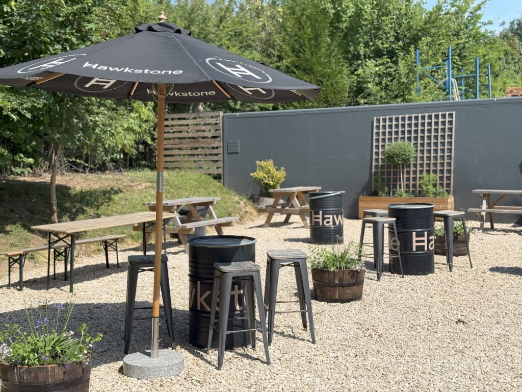 Hawkstone Brewery is just outside Bourton-on-the-Water, about a 25-minute drive from The Farmer’s Dog. When I visited midweek at 11am, it was quiet, but open. There’s a small shop selling bottled ales, cider, lagers, and gifts, as well as a bar, “The Hawkstone Arms,” which seemed to open from around 11am–8pm (based on the handwritten chalkboard outside).
